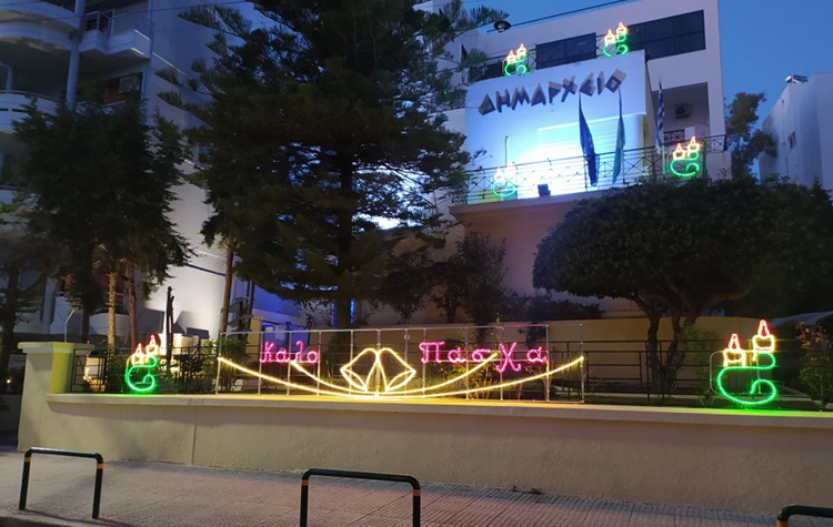 Πασχαλινά χρώματα και φωτισμός στον Δήμο Αλίμου. Σύμφωνα με τον δήμαρχο της πόλης, Ανδρέα Κονδύλη: «Τοποθετήθηκε και φέτος ο Πασχαλινός στολισμός στην πόλη μας, πιο πλούσιος από κάθε άλλη χρονιά, για να χαρούν μικροί και μεγάλοι. Χρόνια Πολλά, και του χρόνου».