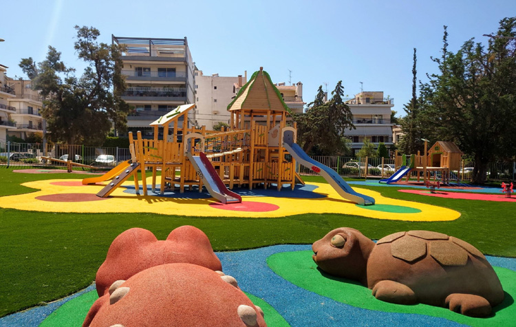 Ξύλινο κάστρο, κούνια – έκπληξη για όλη την παρέα, χελώνες αλλά και τραμπάλες και τσουλήθρες και κούνιες όλων των ειδών φτιαγμένες με πολλή αγάπη και ποιοτικά υλικά συνθέτουν έναν παραμυθένιο χώρο που κατέλαβε δεσπόζουσα θέση στην κάτω πλευρά της πλατείας Μακεδονίας στον Δήμο Γλυφάδας. Είναι άλλη μια επιλογή άθλησης και διασκέδασης για τα παιδιά και, ταυτόχρονα, ένας χώρος όπου οι γονείς απολαμβάνουν την παραμονή τους, κάτω από τις πέργκολες.