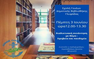 Στη συνάντηση θα αναλυθούν σε βάθος οι επιπτώσεις της πανδημίας στους νέους 12-20 ετών. Η ενημέρωση και διάδραση στη Σχολή Γονέων της Δημοτικής Βιβλιοθήκης Γλυφάδας, είναι εδώ για να βοηθήσει την οικογένεια να προλάβει, να θεραπεύσει και να αναγεννήσει τον εαυτό της.
