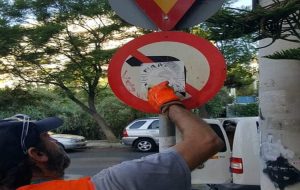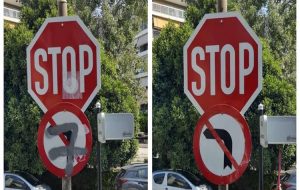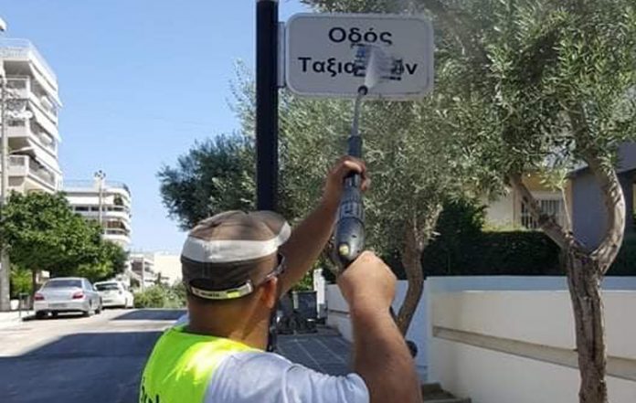 Επιχείρηση αφαίρεσης αυτοκόλλητων και γκράφιτι από όλες τις πινακίδες του Δήμου Αλίμου (οδοσήμανση,