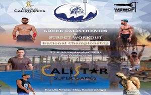Η εταιρεία διοργάνωσης αθλητικών γεγονότων Calistar Super Games, σε συνεργασία με τo School of Calisthenics και την Παγκόσμια Ομοσπονδία Καλλισθενικής Γυμναστικής WSWCF, υπό την αιγίδα του Δήμου Παλαιού Φαλήρου, διοργανώνουν στις 25-26 Σεπτεμβρίου, το πρωτάθλημα Greek Calisthenics & Street Workout National Championship 2021.