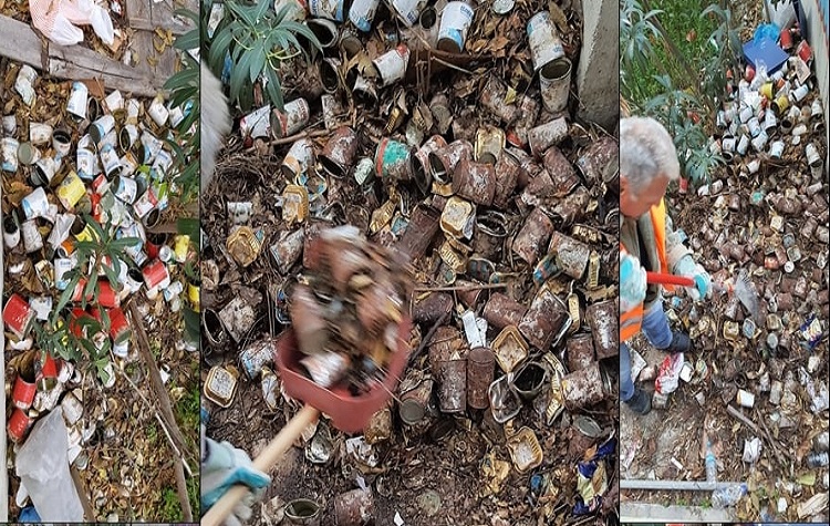 Στο εγκαταλελειμμένο κτήριο που βρίσκεται απέναντι από το 4ο δημοτικό και το 4ο νηπιαγωγείο Αλίμου υπήρχε «βουνό» από κονσέρβες τροφής για γάτες. Η δυσοσμία ήταν έντονη.