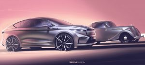 Η SKODA AUTO προχώρησε στο επόμενο στάδιο της αποκάλυψης του νέου SKODA ENYAQ COUPÉ iV, λίγο πριν την παγκόσμια πρεμιέρα στο τέλος του μήνα, δίνοντας στη δημοσιότητα δύο design σκίτσα του νέου μοντέλου. Η coupé έκδοση του πλήρως ηλεκτρικού ENYAQ iV έχει ακόμα πιο ελκυστική σχεδίαση και, χάρη στην εξαιρετική αεροδυναμική της, διαθέτει ακόμη μεγαλύτερη αυτονομία από την έκδοση SUV. Τα σκίτσα αποκαλύπτουν μία ελαφρά κεκλιμένη γραμμή οροφής, με το πίσω μέρος να χαρακτηρίζεται από ένα κάθετο απότομο τελείωμα. Επίσης, ξεχωρίζουν η εμπρός σπορ ποδιά καθώς και τα πλαϊνά μαρσπιέ, βαμμένα στο χρώμα του αμαξώματος.