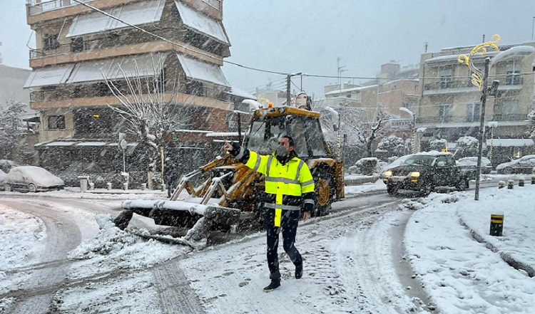 Ο λόγος για τον δήμαρχο Δάφνης-Υμηττού, Αναστάσιο Μπινίσκο, ο οποίος συντόνιζε τα συνεργεία του Δήμου μέχρι αργά του βράδυ.