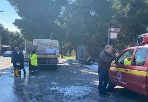 Το τηλεφωνικό κέντρο της Πολιτικής Προστασίας (210 8961444) συνεχίζει να λειτουργεί σε 24ωρη βάση, ενώ έχουν προγραμματιστεί επιπλέον ρίψεις αλατιού για σήμερα, Πέμπτη, από τις 06.00 το πρωί, στα δύσκολα σημεία του Πανοράματος, όπου αναμένεται να δημιουργηθεί παγετός.