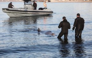 Φωτογραφίες από την πρωινή επιχείρηση διάσωσης του φαλαινοειδούς Ζιφιού, που βρέθηκε τραυματισμένο σε παραλία του Αλίμου, ανάρτησε στα μέσα κοινωνικής δικτύωσης ο δήμαρχος Παλαιού Φαλήρου, Γιάννης Φωστηρόπουλος.