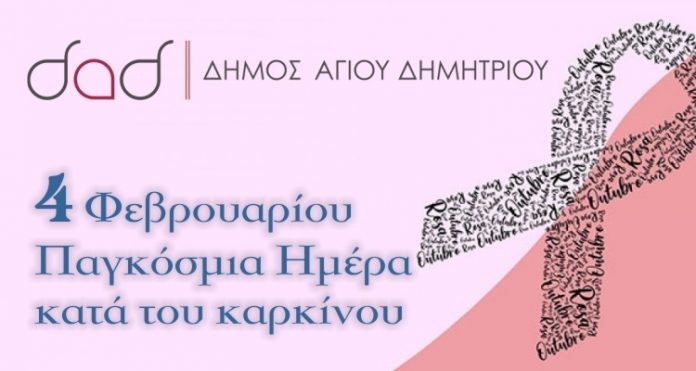Δράσεις, με στόχο την πρόληψη και την αντιμετώπιση του καρκίνου, διοργανώνει ο Δήμος Αγίου Δημητρίου, με αφορμή την Παγκόσμια Ημέρα κατά του Καρκίνου (4 Φεβρουαρίου).