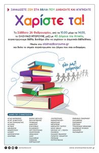 Στη δράση «Όλοι Μαζί Μπορούμε για το Βιβλίο», συμμετέχει ο Δήμος Μοσχάτου- Ταύρου, το Σάββατο 26 Φεβρουαρίου 2022 από τις 9:00 π.μ. έως και τις 14:30 μ.μ..
