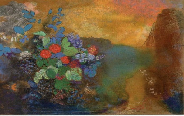 Ο Οντιλόν Ρεντόν / Odilon Redon, πραγματικό όνομα Μπερτράν Ρεντόν, γεννήθηκε το 1840 στο Μπορντώ της Γαλλίας, σε ευκατάστατη οικογένεια. Το παρατσούκλι Οντιλόν, το πήρε από το επώνυμο της κρεολής μητέρας του, Οντίλ. Ο πατέρας του είχε κάνει περιουσία στο εμπόριο σκλάβων στη Λουιζιάνα την δεκαετία του 1830. Από το 1855 πήρε μαθήματα σχεδίου από τον ρομαντικό τοπιογράφο Στανισλάς Γκορέν. Το 1861, στο Παρίσι ήθελε να κάνει σπουδές αρχιτεκτονικής και γλυπτικής αλλά απέτυχε. Στο Παρίσι, μαθήτευσε στο εργαστήριο του ακαδημαικού Ζαν-Λεόν Ζερόμ, διδάχθηκε χαρακτική από τον Ροντόλφ Μπρεντέν, ο οποίος άσκησε σημαντική επιρροή στο έργο του, και έμαθε λιθογραφία κοντά στον περίφημο Ανρί Φαντέν-Λατούρ. Μετά όμως την εκδήλωση μιας κρίσης παράνοιας επέστεψε στο γενέθλιο Μπορντώ και πήρε μαθήματα από έναν ντόπιο ακουαρελίστα και από τον χαράκτη Rodolphe Bresdin. Έγινε δεκτός για πρώτη φορά στο εκθεσιακό Παρισινό Σαλόν του 1867, στον τομέα της χαρακτικής. Η καλλιτεχνική του σταδιοδρομία διακόπηκε το 1870, όταν κλήθηκε να υπηρετήσει στον στρατό στον Γαλλοπρωσικό πόλεμο μέχρι το τέλος του το 1871. Ανάμεσα στο 1879 και 1899 φιλοτέχνησε μονοχρωματικές συνθέσεις σε χαρτί, με κάρβουνο και παστέλ και σειρές λιθογραφιών με πρωτοποριακό τρόπο, υποδείγματα για αρκετούς νεότερους καλλιτέχνες. Σε πολλές από αυτές τις λιθογραφίες εικονογραφούσε «σκοτεινά» λογοτεχνικά κείμενα των Baudelaire, Flaubert κ.α. Όπως και στα έργα τους, στόχος του ήταν η ερμηνευτική των ονείρων, το πνεύμα που ανατέλλει στους παλμούς του μυστηρίου, μέσα στην ατμόσφαιρα της αβεβαιότητας. Ωστόσο συνέχισε να ζωγραφίζει σπουδές τοπίων και ανθογραφίες ελκυστικής ποιητικής ωραιότητας καθώς και πορτραίτα με παστέλ.