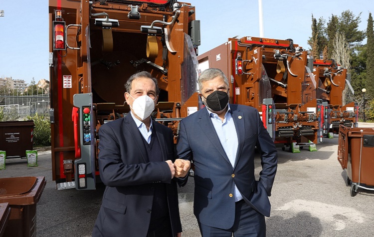 Τέσσερα νέα ειδικά απορριμματοφόρα, πλυντήρια κάδων και 925 καφέ κάδους, που θα αξιοποιηθούν για την έναρξη του πιλοτικού προγράμματος διαλογής στην πηγή βιοαποβλήτων (υπολειμμάτων κουζίνας και κήπου), παρέλαβε σήμερα ο Δήμος Βύρωνα, στο πλαίσιο προγραμματικής σύμβασης με τον Ειδικό Διαβαθμιδικό Σύνδεσμο Ν. Αττικής (ΕΔΣΝΑ).