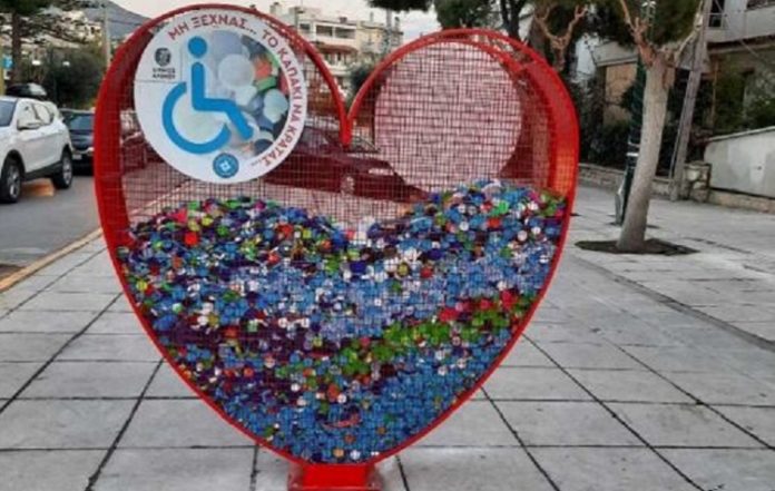 Κάδοι σε σχήμα καρδιάς έχουν τοποθετηθεί στην πόλη του Αλίμου και υποδέχονται τα πλαστικά καπάκια που ρίχνουν οι κάτοικοι για ανακύκλωση. Τα καπάκια παραδίδονται από τον Δήμο στην Πανελλήνια Ομοσπονδία Παραπληγικών. Η Ομοσπονδία συνεργάζεται με εταιρείες ανακύκλωσης, οι οποίες δίνουν ως αντίτιμο χρήματα για την αγορά αναπηρικών αμαξιδίων.