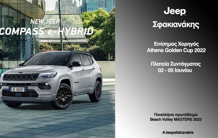 Η Jeep Σφακιανάκης, στο πλαίσιο του Πανελληνίου Πρωταθλήματος Beach Volley MASTERS 2022, υποστηρίζει ως Επίσημος Χορηγός το Athens Golden Cup από τις 2 έως τις 5 Ιουνίου στην Πλατεία Συντάγματος και το Thessaloniki Grand Slam από τις 16 έως τις 19 Ιουνίου στην Πλατεία Αριστοτέλους.