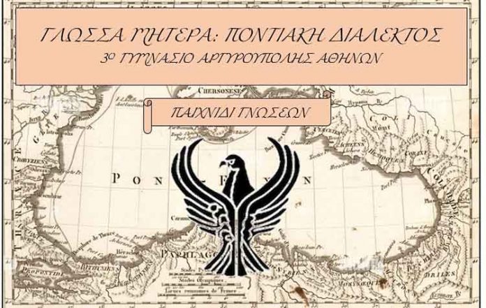 Οι μαθητές της Α Γυμνασίου με την καθοδήγηση της υπεύθυνης Φιλολόγου Παναγιώτας Σουρίδη δημιούργησαν το επιτραπέζιο παιχνίδι: «Γλώσσα Μητέρα: Ποντιακή Διάλεκτος», επιδιώκοντας τη διάχυση των γνώσεων και των εμπειριών τους από την αλληλεπίδραση με το μεγαλείο του ποντιακού ελληνισμού.