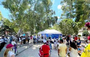 Τριγύρω δεν κινούνταν αυτοκίνητα και πάνω στον πεζόδρομο της Γρ. Λαμπράκη είχαν τοποθετηθεί τραπέζια με ενημερωτικό υλικό, μοιράστηκαν μπλουζάκια και καπέλα στους παρευρισκομένους, υπήρχαν ξυλοπόδαροι που χάρισαν όμορφες στιγμές σε όλους, ενώ στα παγκάκια με τους στίχους των ποιητών υπήρχαν μπαλόνια και σε όλο το χώρο γλάστρες με λουλούδια. Γύρω στις 11 ξεκίνησε το Κυνήγι του Κρυμμένου Θησαυρού με έπαθλο ένα ποδήλατο, που το κέρδισε η μικρή Νεφέλη. Ήταν μια όμορφη γιορτή, μια ποιοτική εκδήλωση. Από τα ηχεία ακούγονταν χαρούμενα τραγούδια και ο κόσμος έγινε γρήγορα μια χορευτική παρέα.