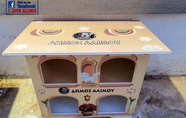 Σπιτάκια για τις αδέσποτες γάτες του Αλίμου τοποθέτησε ο Δήμος στοχεύοντας στην προστασία τους από τις καιρικές συνθήκες. Την είδηση έκανε γνωστή ο δήμαρχος της πόλης, Ανδρέας Κονδύλης γράφοντας σε μήνυμά του τα εξής: