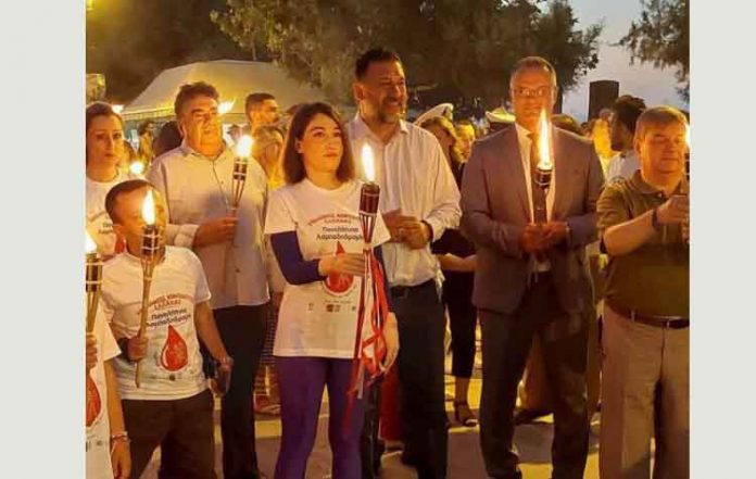 Για να προσθέσει, κάνοντας ιδιαίτερη μνεία στο θεσμό των εκδηλώσεων της Λαμπαδηδρομίας και με έμφαση στο εφετινό επετειακό γεγονός και στα μηνύματα κοινωνικής αλληλεγγύης: «Η Φλόγα μεταφέρεται από χέρι σε χέρι και από πόλη σε πόλη και μαζί της μεταφέρονται τα μηνύματα της αλληλεγγύης, της ανιδιοτελούς προσφοράς, της αγάπης. Και σήμερα από εδώ, από το Ξυλόκαστρο, αρχίζει κάτι μοναδικό που μπορεί να φτάσει στα πέρατα του κόσμου. Και σε αυτή την γιορτή της Λαμπαδηδρομίας συμμετέχουμε όλοι, απλοί πολίτες, αθλητές, παραολυμπιονίκες, που με κάθε μεταφορικό μέσο και τρόπο, με πλωτά, με ποδήλατα, με μοτοσυκλέτες, πεζή, επικοινωνούμε δυναμικά το μήνυμα της Εθελοντικής Αιμοδοσίας και παράλληλα αναδεικνύουμε την επιτακτική ανάγκη για αθρόα προσφορά αίματος, προκειμένου να καλυφθούν οι σημαντικές ελλείψεις που προέκυψαν καθ’ όλη τη διάρκεια της πανδημίας».