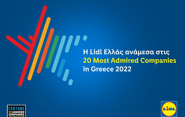 Η Lidl Ελλάς, έλαβε σημαντική διάκριση στον μεγαλύτερο θεσμό για την εταιρική φήμη στη χώρα, Most Admired Companies in Greece, τον οποίο διοργανώνει τα τελευταία οκτώ χρόνια το περιοδικό Fortune Greece σε συνεργασία με την KPMG Greece. Φέτος, αναδείχθηκε 14η ανάμεσα στις 20 πιο αξιοθαύμαστες επιχειρήσεις στην Ελλάδα.