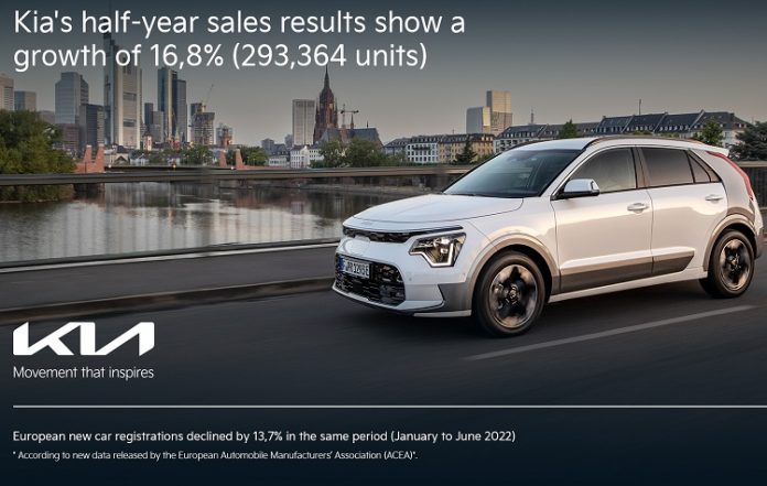 Επίσημα στοιχεία της Ευρωπαϊκής Ένωσης Κατασκευαστών Αυτοκινήτων (ACEA) αποκαλύπτουν ότι η Kia συνεχίζει να αψηφά την πτωτική τάση της αγοράς για τις πωλήσεις νέων οχημάτων, καταγράφοντας ανάπτυξη 16,8% στην ευρωπαϊκή αγορά επιβατικών αυτοκινήτων που συρρικνώθηκε κατά 13,7% στο πρώτο εξάμηνο του 2022, από την αρχή του έτους.