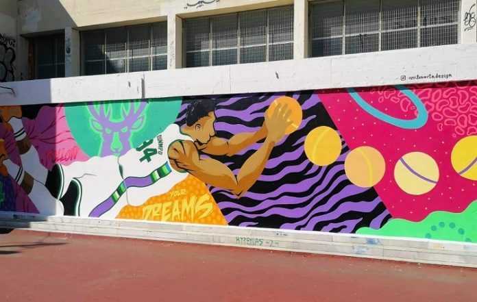 Ο Γιάννης Αντετοκούνμπο τοιχογραφία στο 8ο Δημοτικό