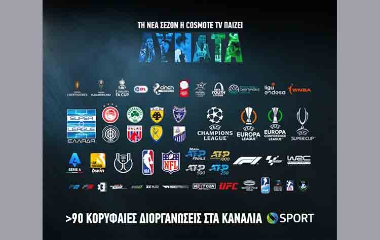 Τη νέα τηλεοπτική σεζόν η COSMOTE TV «παίζει δυνατά» με συναρπαστικό αθλητικό περιεχόμενο από περισσότερες από 90 κορυφαίες διοργανώσεις. Ποδόσφαιρο, μπάσκετ, μηχανοκίνητα, τένις και άλλα δημοφιλή σπορ, θα καθηλώσουν τους συνδρομητές μέσα από 18 αθλητικά κανάλια, ενώ η μεγάλη δημοσιογραφική ομάδα των καναλιών COSMOTE SPORT, θα βρίσκεται «μέσα σε κάθε φάση» για να μεταφέρει όλη τη δράση με πλούσια ρεπορτάζ και ειδικές εκπομπές.