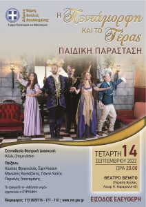 Στο πλαίσιο του «Πολιτιστικού Καλοκαιριού», ο Δήμος Βάρης Βούλας Βουλιαγμένης, παρουσιάζει την θεατρική παράσταση «Η Πεντάμορφη και το Τέρας» την Τετάρτη 14 Σεπτεμβρίου 2022 και ώρα 20:00, στο θέατρο «Βέμπο» στη Βούλα (Λεωφ. Καραμανλή 14, Παραλία Βούλας).