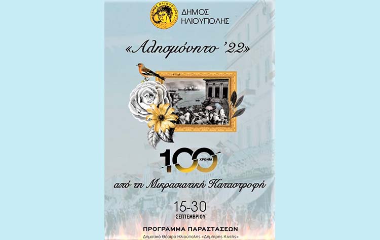 Ο Δήμος Ηλιούπολης αποτίει φόρο τιμής και μνήμης, με σειρά εκδηλώσεων αφιερωμένων στο «Αλησμόνητο ‘22», της Μικρασιατικής Καταστροφής, του Ξεριζωμού και της Προσφυγιάς, δίνοντας έμφαση στην ιστορία και τον πολιτισμό των ελληνικών κοινοτήτων, σε ξεχωριστές προσωπικές ιστορίες και πάντα με φόντο την μουσική και τους στίχους, ως ταυτοτικά στοιχεία του προσφυγικού Ελληνισμού.