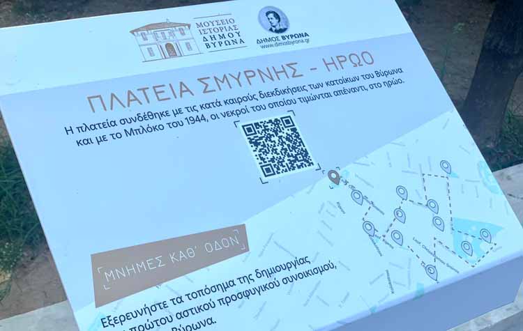 Τα δώδεκα σημεία- στάσεις του περίπατου όπου τοποθετήθηκαν οι στήλες με τα QR Codes είναι: Παλαιό Δημαρχείο (Μουσείο Ιστορίας Δήμου Βύρωνα), Ταπητουργείο, 1ο Δημοτικό Σχολείο Βύρωνα, Ιερός Ναός Αγίας Τριάδας, Κέντρο Υγείας – Πολυϊατρείο, Πλατεία Βαρουτίδη (Αγαλματάκια), A.O. «Νέοι Βύρωνος», Πλ. Αγίου Λαζάρου – Διοικητήριο, Παλιά Αγορά, Πλατεία Ειρήνης – Μον Σινέ/Μαριάννα, Νηπιοκομείο «Μόργκενταου», Πλατεία Σμύρνης.