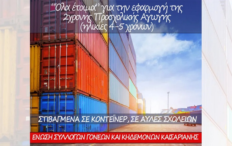 Φωνή απελπισία βγάζουν οι γονείς του 8ου Νηπιαγωγείου Καισαριανής για το «στοίβαγμα» των παιδιών τους σε κοντέινερ, με τη μετατροπή του Νηπιαγωγείου από μονοθέσιο σε διθέσιο.