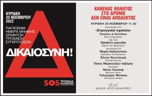 «Χωρίς Δικαιοσύνη δεν θα υπάρξει Ειρήνη στους Δρόμους», επισημαίνει η δημοτική Αρχή Αγίου Δημητρίου.