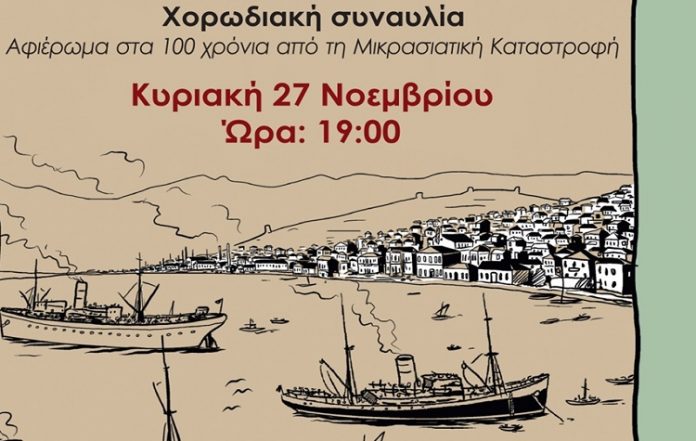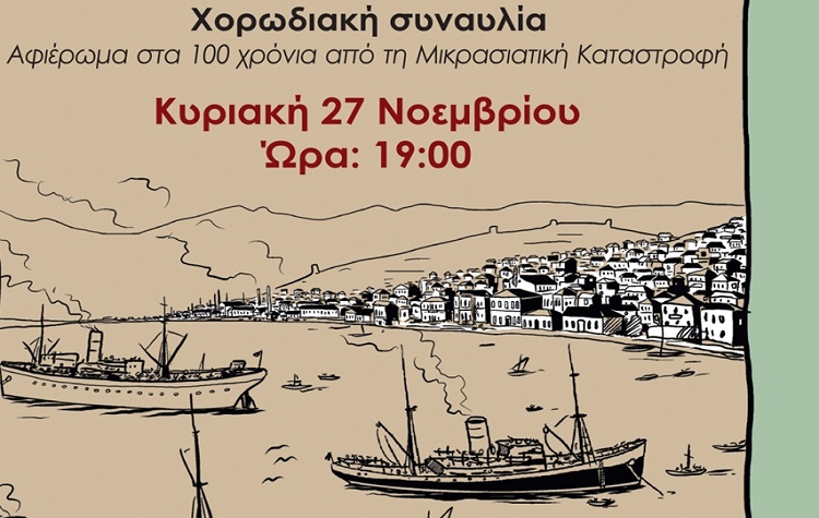 Χορωδιακή συναυλία αφιερωμένη στα 100 χρόνια από την Μικρασιατική Καταστροφή, διοργανώνει την Κυριακή 27 Νοεμβρίου στις 7μμ ο Δήμος Βάρης Βούλας Βουλιαγμένης στο Πολιτιστικό Κέντρο «Ιωνία» (Λεωφ. Κ. Καραμανλή 18, Βούλα).