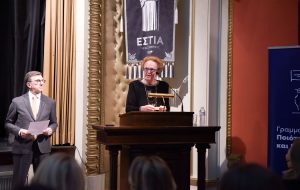 Στην κατάμεστη αίθουσα του Κέντρου Πολιτισμού ΕΣΤΙΑ στη Νέα Σμύρνη, η Νέα Δημοκρατία τίμησε την επέτειο του ενός αιώνα από την Μικρασιατική Καταστροφή με μια εκδήλωση αφιερωμένη στους πρόσφυγες που ξεριζώθηκαν από τον τόπο τους, την ενσωμάτωση τους στον ελλαδικό χώρο και την καθοριστική συμβολή τους στην ζωή και την ανάπτυξη της χώρας.