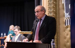 Το λόγο έλαβε ο γραμματέας της Πολιτικής Επιτροπής της Νέας Δημοκρατίας Παύλος Μαρινάκης διαβάζοντας ένα απόσπασμα από ένα βιβλίο που είχε γράψει ο παππούς του: «Δεν ξεριζώθηκαν μονάχα οι Έλληνες της Σμύρνης. Έσβησε και χάθηκε μεθοδευμένα και συστηματικά ό,τι το Ελληνικό. Πραγματικά, “η Σμύρνη έχει χάσει τη σκιά της…”. […] Τριγυρίζω, κοντεύει να μεσημεριάσει, προσπαθώντας να βρω μιαν άκρη. Κάποιος Τούρκος, με βλέπει να ψάχνω αφοσιωμένος στον χάρτη της πόλης και με πλησιάζει.
