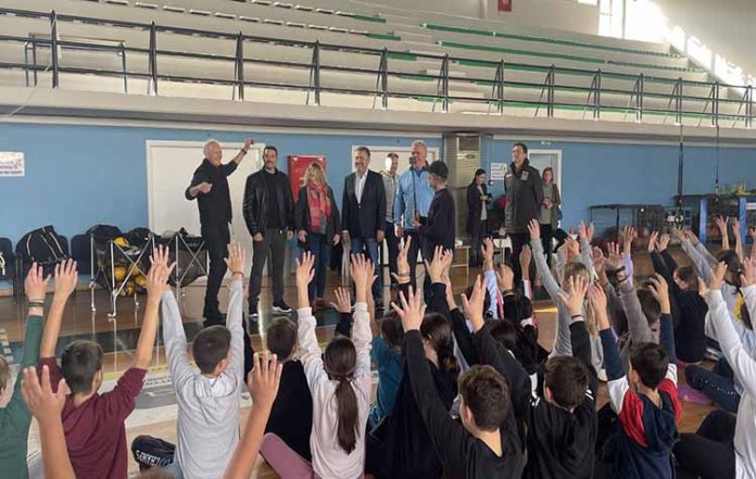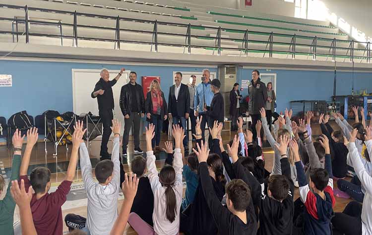 Ο δήμαρχος Ζωγράφου Βασίλης Θώδας μίλησε στους μικρούς μαθητές για τα οφέλη της άσκησης στη σωματική και πνευματική υγεία όλων, στέλνοντας το μήνυμα της συμμετοχής σε αθλητικές δραστηριότητες, όπως του Βόλεϊ.