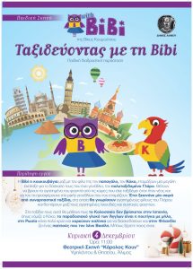 Bibi» την Κυριακή 4 Δεκεμβρίου, στις 11 το πρωί, στο θέατρο «Κάρολος Κουν» (Υψηλάντου & Θησείου). Μια κουκουβάγια κι ένας παπαγάλος σε συναρπαστικά ταξίδια γεμάτα γνώσεις! Η είσοδος είναι ελεύθερη.