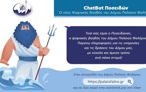 Εντός των επομένων ημερών θα βρίσκεται στην διάθεση των πολιτών ο ψηφιακός βοηθός «Ποσειδών» του Παλαιού Φαλήρου, που δημιουργήθηκε και ενεγοποιείται στο πλαίσιο του Ψηφιακού Μετασχηματισμού του Δήμου με σκοπό τη δημιουργία νέων και καινοτόμων διαύλων επικοινωνίας με τους δημότες.