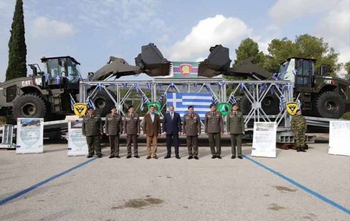 Ο Περιφερειάρχης Αττικής Γ. Πατούλης, χαιρετίζοντας την τελετή παράδοσης-παραλαβής 20 Μηχανημάτων – Ειδικοποιημένων Οχημάτων Μηχανικού, καθώς και υλικού γεφυροσκευής, από την Περιφέρεια στο Γενικό Επιτελείο Στρατού, τα οποία προστίθενται στα 36 Μέσα Μηχανικού που έχουν ήδη παραληφθεί.