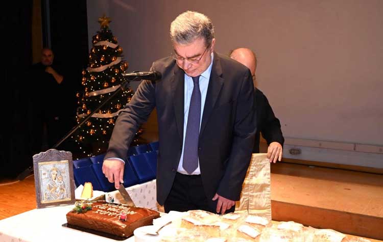 Η ευλόγηση της πίτας έγινε από τον πατέρα Γεώργιο Πολυχρονόπουλο του Ιερού Ναού της Μεταμορφώσεως που έκοψε τα πρώτα κομμάτια για τον Χριστό και τον Δήμαρχο Ανδρέα Ευθυμίου. Στη συνέχεια, η εμπεριστατωμένη ομιλία του Δημάρχου για τις σημαντικές παρεμβάσεις και τα έργα που είναι σε εξέλιξη, χειροκροτήθηκε έντονα από το κοινό ενώ εκφράσθηκαν ιδιαίτερα θετικές αναφορές από τους βουλευτές των πέντε κομμάτων που παραβρέθηκαν συγχαίροντας τον δήμαρχο για το έργο που πραγματοποιείται.