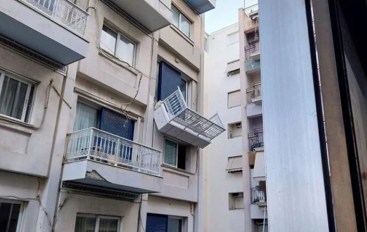 Η αποξήλωση του μπαλκονιού, το οποίο αποκολλήθηκε από το κτίριο ξημερώματα Σαββάτου, έχει προγραμματιστεί για το απόγευμα της Τρίτης.