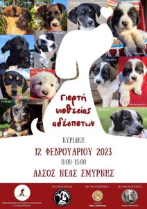 Η εκδήλωση διοργανώνεται από τον Φιλοζωικό Σύλλογο Αιγιαλείας «Τα Φιλαράκια», στο Αλσος Νέας Σμύρνης, από τις 11πμ έως τις 3μμ, σε συνεργασία με την Φιλοζωική και Περιβαλλοντική Δράση Εθελοντών Παλαιού Φαλήρου και Νέας Σμύρνης και την υποστήριξη των Δήμων Νέας Σμύρνης και Αιγιαλείας.