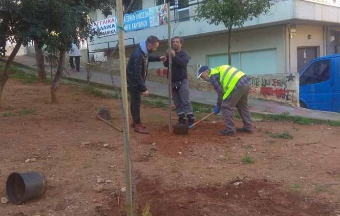 Και σήμερα, από το πρωί υπάλληλοι της Υπηρεσίας Πρασίνου, παρουσία του Αντιδημάρχου Πρασίνου και Ψηφιακής Πολιτικής, Δημήτριου Κολομπάτσου φύτεψαν συνολικά 18 νέα δέντρα και 20 νέους θάμνους -αγγελικές.