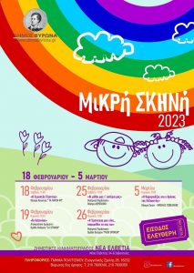Μετά την πρεμιέρα το Σαββατοκύριακο (18 και 19/2) συνεχίζονται οι παραστάσεις της “Μικρής Σκηνής” του Δήμου Βύρωνα, το Σάββατο 25 και την Κυριακή 26 Φεβρουαρίου, στον ανακαινισμένο Δημοτικό Κινηματογράφο «Νέα Ελβετία» (Νέας Ελβετίας 34 & Σεβαστείας)
