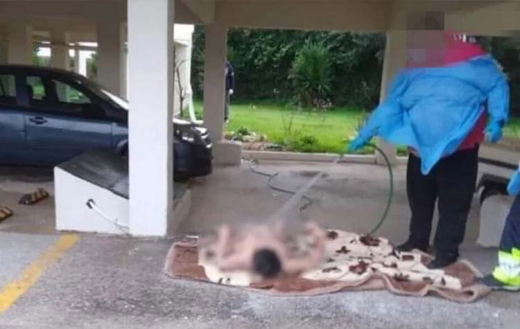 Σάλος έχει ξεσπάσει εδώ και λίγες ώρες από το συμβάν στο οποίο το πλήρωμα του ασθενοφόρου του Δήμου Ωρωπού πλένει στην πιλοτή πολυκατοικίας ηλικιωμένη κυρία.
