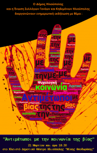 Οι τρόποι αντιμετώπισης των κρουσμάτων της βίας, ιδιαίτερα στους νέους, καθώς και η ευαισθητοποίηση των πολιτών γύρω από αυτό το κοινωνικό φαινόμενο είναι το θέμα της εκδήλωσης που διοργανώνει ο Δήμος Ηλιούπολης σε συνεργασία με την Ένωση Συλλόγων Γονέων και Κηδεμόνων της πόλης, την Τρίτη 21 Μαρτίου, στις 18.30 στο Θέατρο «Μίκης Θεοδωράκης» του Δημαρχείου Ηλιούπολης.