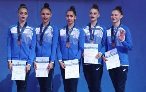 Η ελληνική ομάδα (Ελπίδα Εγγλέζου, Καλομοίρα Καρόκη, Ειρήνη Κονιστή, Χριστίνα Ρήγα, Μαριέττα Τοπολλάι) μάγεψε στο πρόγραμμα με 3 κορδέλες / 2 μπάλες και πήρε 29,200 βαθμούς, που της χάρισαν την 3η θέση και το χάλκινο μετάλλιο, πίσω από την Ιταλία (30,650 β.) και το Ισραήλ (29,350 β.).