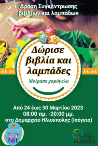 Βιβλία και λαμπάδες, που θα προσφερθούν στον Σύλλογο Γονέων και Κηδεμόνων του Ειδικού Γυμνασίου- Λυκείου της πόλης, συγκεντρώνει η Κυψέλη Εθελοντών του Δήμου Ηλιούπολης σε συνεργασία με το Σώμα Ελληνικού Οδηγισμού Τ.Τ. Ηλιούπολης.