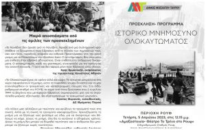 Για το ιστορικό μνημόσυνο θα αναφερθούν, ο εκπρόσωπος της Ισραηλιτικής Κοινότητας Αθηνών κ. Άρης Εμμανουήλ, ο καθηγητής Δημόσιας Ιστορίας του Παντείου Πανεπιστημίου κ. Χάρης Αναστασιάδης και ο εκπαιδευτικός- μέλος του ΔΣ του «Ιδρύματος Γληνού» κ. Κώστας Θεριανός, ενώ οι μαθητές και οι μαθήτριες του 1ΟΥ ΓΕΛ Ταύρου θα αποτίσουν φόρο τιμής στη μνήμη των αθώων συνανθρώπων μας που δολοφονήθηκαν. Κατά τη διάρκεια του μνημόσυνου θα ακουστούν τραγούδια από την Μπαλάντα του Μαουτχάουζεν από την μουσικό-ερμηνεύτρια, Αναστασία Χατζηπαύλου.