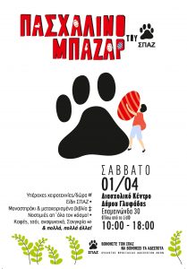 Το ενδιαφέρον των φιλόζωων της Γλυφάδας και όχι μόνο, αναμένεται να συγκεντρώσει το Πασχαλινό μπαζάρ του Συλλόγου Προστασίας Αδέσποτων Ζώων (Σ.Π.Α.Ζ.) για τα αδέσποτα που θα πραγματοποιηθεί το πρωί του Σαββάτου 1 Απριλίου, 10:00 π.μ. – 6:00 μ.μ.στο Διασχολικό Κέντρο Δήμου Γλυφάδας.