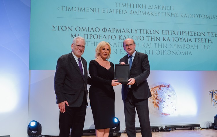 Τιμητική Διάκριση ως «Τιμώμενη Εταιρία Φαρμακευτικής Καινοτομίας» έλαβε ο Όμιλος Φαρμακευτικών Επιχειρήσεων Τσέτη, με επικεφαλής την πρόεδρο και CEO του Ομίλου κυρία Ιουλία Τσέτη, για την ανάπτυξη και τη συμβολή της στην ελληνική οικονομία, στο πλαίσιο των βραβείων PRIX GALIEN 2023, στις 5 Απριλίου 2023, στο Μέγαρο Μουσικής.