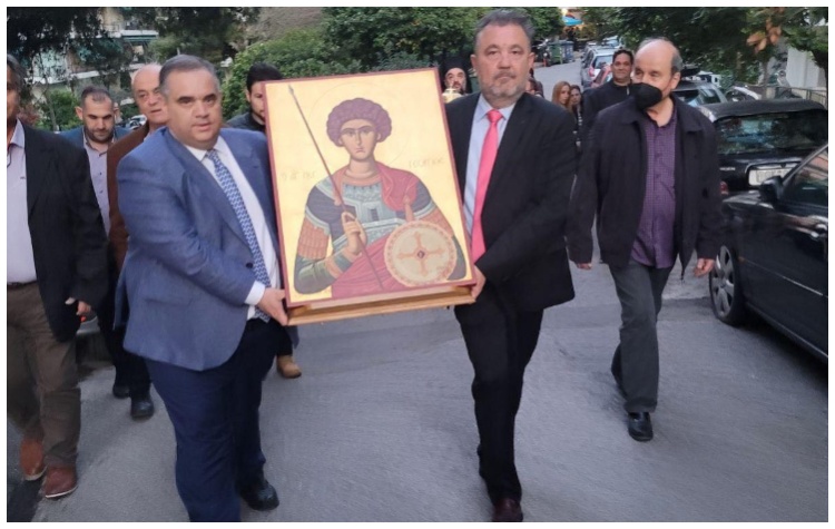 Με την απαιτούμενη θρησκευτική ευλάβεια τελέστηκε η θεία Λειτουργία και η λιτανεία της Ιεράς εικόνας του Αγίου Γεωργίου στους δρόμους του Δήμου Ζωγράφου.