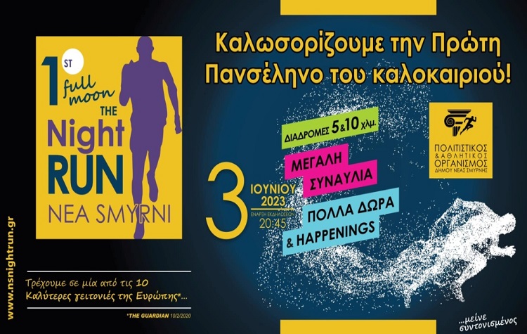 Ο 1ος Νυχτερινός Αγώνας υπό το φως της πρώτης πανσελήνου του καλοκαιριού διοργανώνεται το Σάββατο 3 Ιουνίου 2023 στη Νέα Σμύρνη.